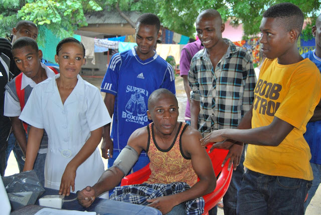 | Bondia Ibrahimu Class ‘King Class Mawe’ akipimwa afya katikati ni mpinzani wake Amosi Mwamakula picha na www.superdboxingcoach.blogspot.com |