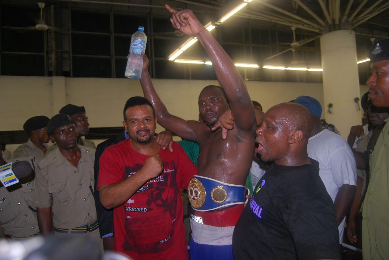 | Bondia Shabani Mhamila ‘Star Boy’ akishangilia ushindi uku akiwa amebebwa juu juu kama mkungu wa ndizi Picha na www.superdboxingcoach.blogspot.com |