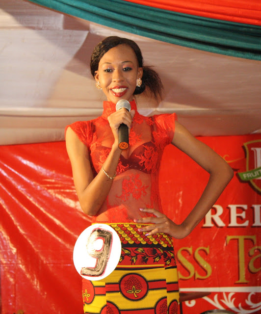 Mmoja wa Washiriki wa Kinyanganyiro Cha Kumtafuta Mlimbwende wa Kanda ya kati akijitambulisha mbele ya hadhara