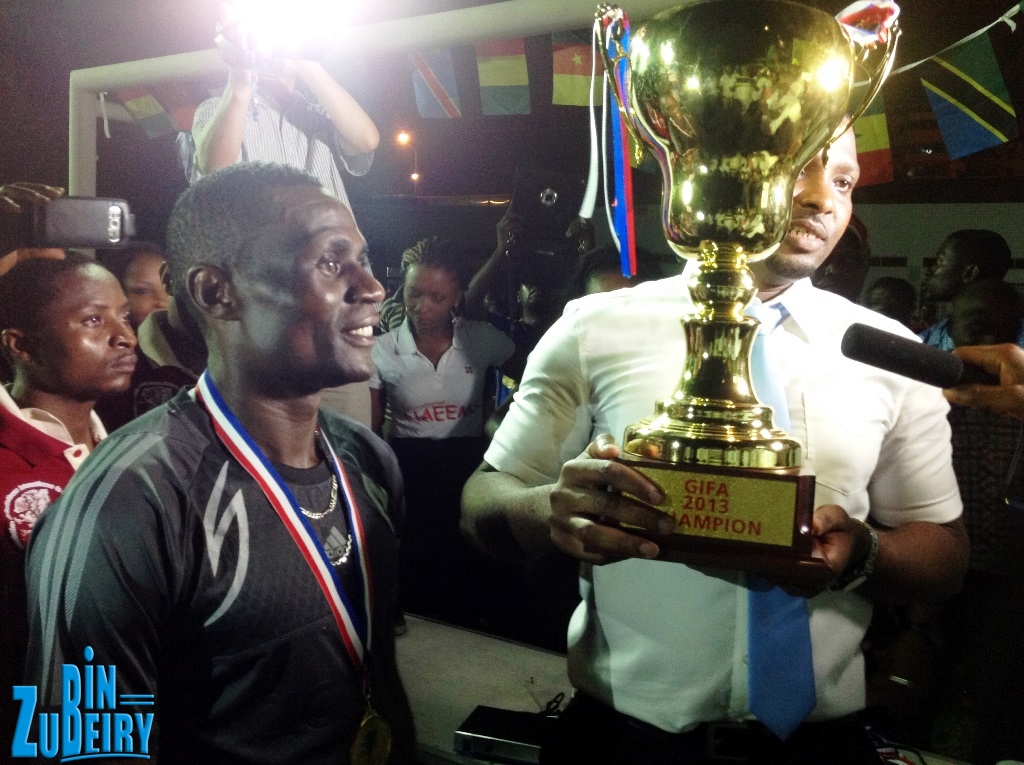 Hassan Mgosi akifuarahia ushindi wa timu ya Jumuiya ya Watanzania nchini