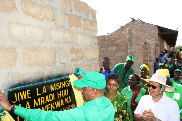 Katibu Mkuu wa CCM Ndugu Abdulrahman Kinana akiweka jiwe la msingi