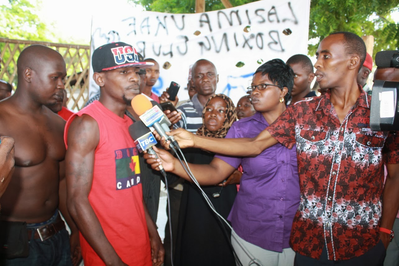 | BONDIA FRANSIC MIYEYUSHO AKIOJIWA NA WAANDISHI WA HABARI BAADA YA KUPIMA UZITO KWA AJILI YA MPAMBANO WAKE NA MKENYA JOSHUA AMULU UTAKAOFANYIKA DESEMBA 31 KATIKA UKUMBI WA MSASANI KLABU PICHA ZAIDI TEMBELEA www.superdboxingcoach.blogspot.com |