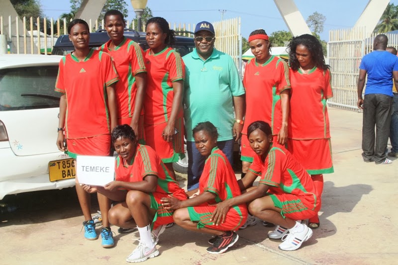Mtemvu akiwa na wachezaji wa timu ya Temeke Queens mabingwa watetezi wa mashindano hayo.