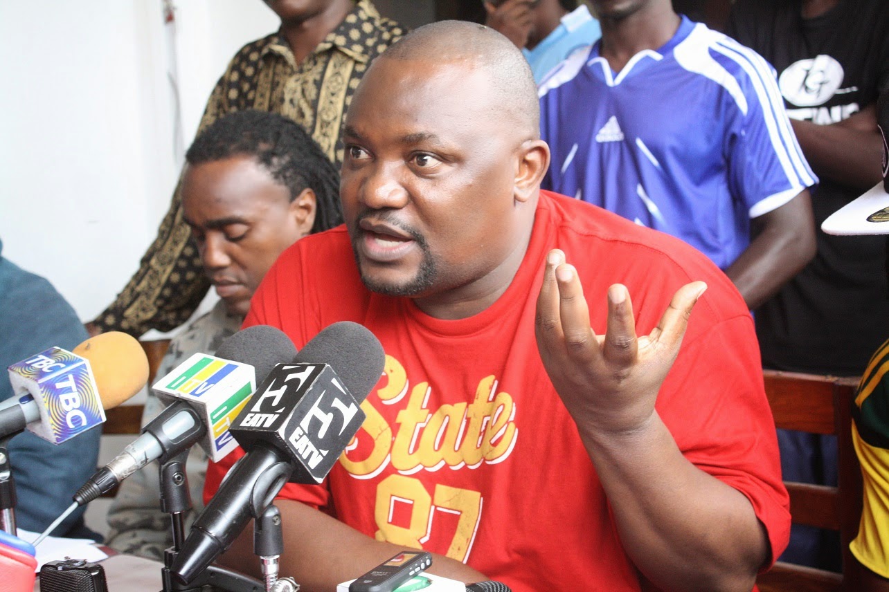 | Promota wa mpambano huo Ally Mwazoa akizungumza mbele ya waandishi wa habari |