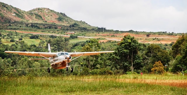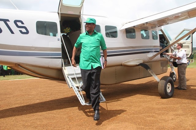 Ndege iliyombeba Katibu Mkuu wa CCM,Ndugu Kinana ikiwasili katika uwanja wa ndege mjini Sumbawanga,mkoani Rukwa mchana huu.