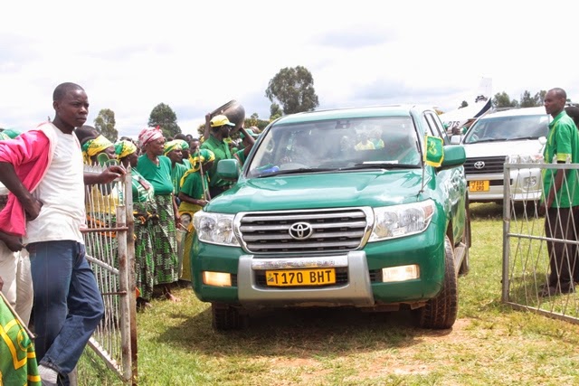 Msafara wa Katibu Mkuu,Ndugu Kinana ukiondoka uwnaja wa ndege mjini Sumbawanga mapema leo ukielekea wilayani Nkasi kuanza rasmi ziara yake ya siku 21,ambayo itaambata na mikoa mitatau ikiwemo Katavi na Kigoma.