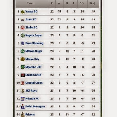 HUU SASA NDIYO MSIMAMO WA LIGI KUU TANZANIA BARA BAADA YA MTANANGE WA LEO