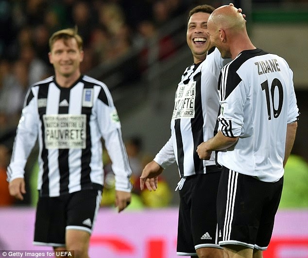 MASHABIKI wenye bahati katika mji wa Ufaransa wa Saint-Etienne jana usiku walimuona Mbrazil Ronaldo na Zinedine Zidane wakicheza kwenye mechi ya 12 ya hisani ya mwisho wa mwaka kupinga umasikini.