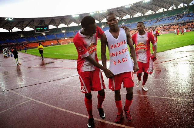 Wakati wa kushangilia goli lake, Singano alivua jezi na