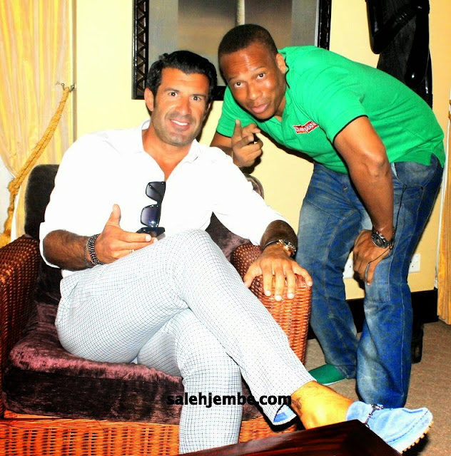 Saleh Ally (kulia) akiwa na Luis Figo siku magwiji wa Real Madrid walipokuwepo nchini