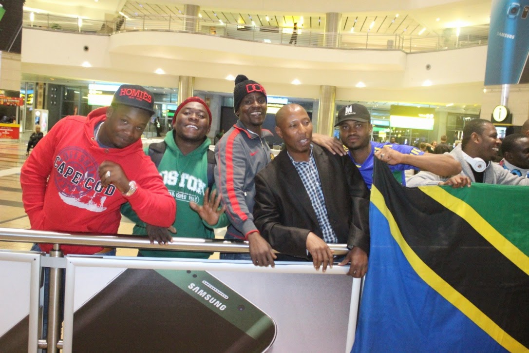 Baadhi ya Watanzania waishio Afrika kusini walijitokeza uwanja wa Ndege kuipokea Taifa Stars