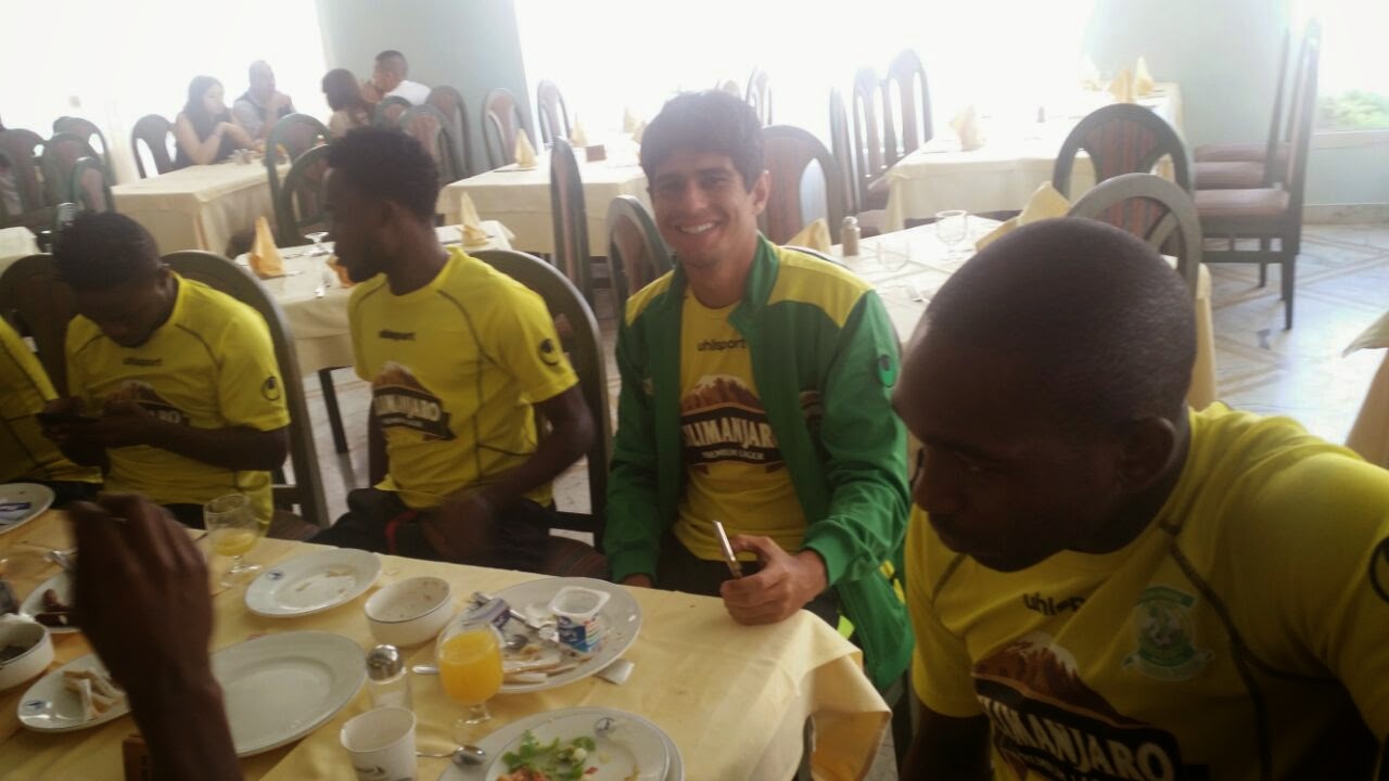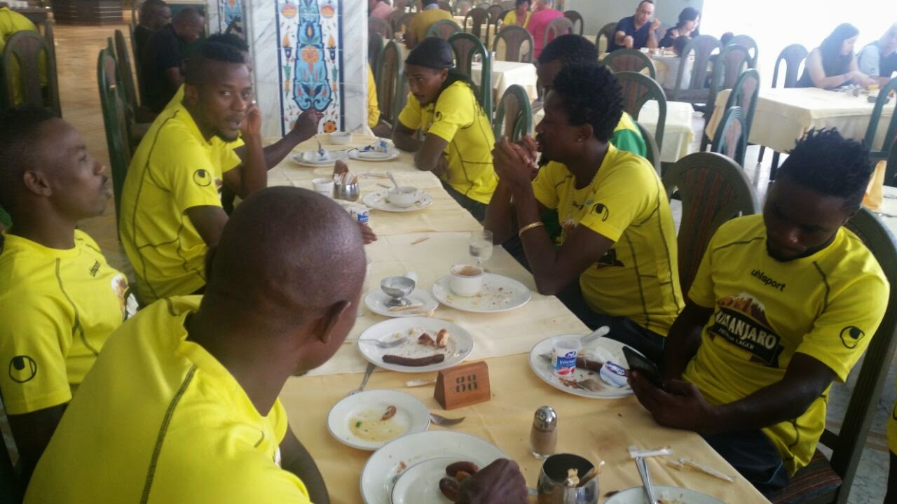 Simon Msuva, kinara wa magoli ligi kuu soka Tanzania bara ambaye ana magoli 17 mpaka sasa akifuatiwa na Amissi Tambwe mwenye mabao 14 akipunga upepo hotelini kwao mjini Sousse Tunisia baada ya kula.