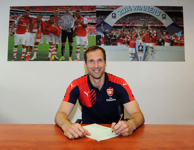 Arsenal wamemsainisha mkataba golikipa Petr Cech kutoka Chelsea, Cech mwenye miaka 33 ametua Emirates Stadium kwa mkataba wa muda mrefu (undisclosed) baada ya kudumu Chelsea kwa muda wa miaka 11.