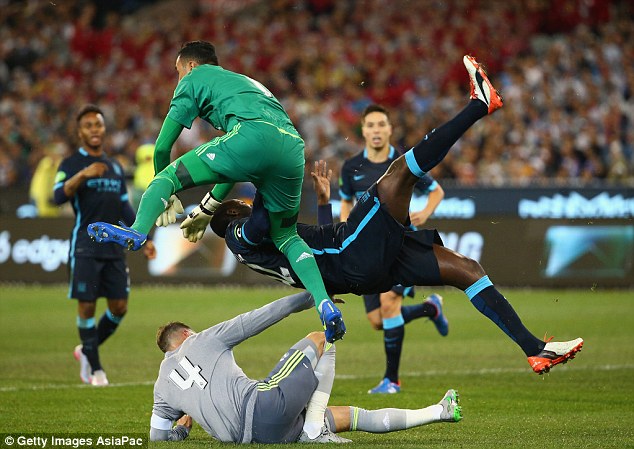 Toure aligongana na golikipa wa Madrid, Keylor Navas ambaye alitoka kwenda kupiga ngumi mpira na Muivory Coast huyo akagongana naye.