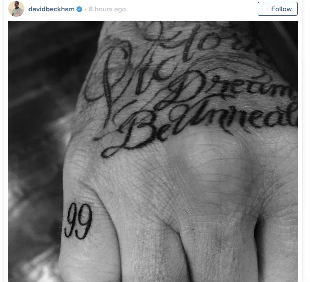 Mbali na Tattoo hiyo, Beckham amechora namba '99' kwenye kidole chake cha mkono wa kushoto.