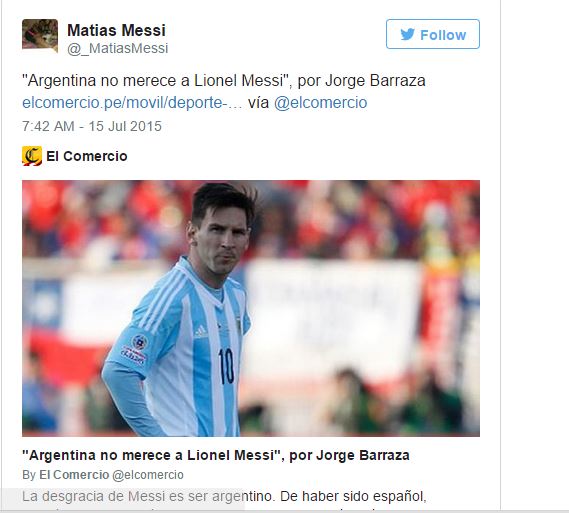 Baadhi ya Tweets za Matias Messi hizi hapa;