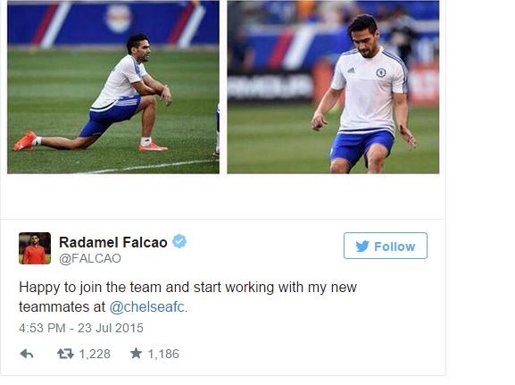 Baada ya mazoezi hayo chini ya Jose Mourinho, Falcao ame-tweet mchana huu akisema: