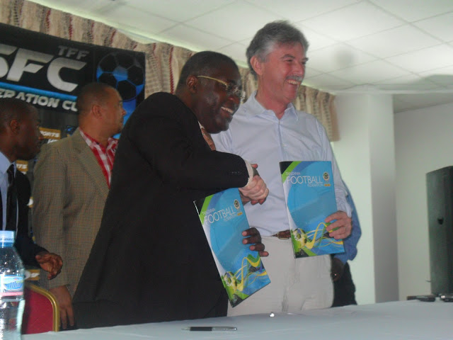 Rias wa TFF Jamal Malinzi (kulia) akiwa na
