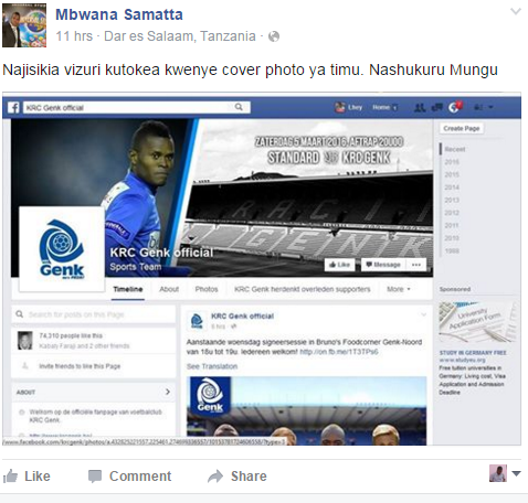 BAADA YA PICHA YAKE KUWEKA COVER PHOTO KWENYE FACEBOOK PAGE YA KRC GENK, HAYA NDIYO MANENO YA SAMATTA