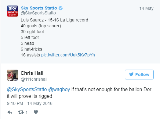 Msimu huu kwenye La Liga, Suarez amefunga magoli 40 na kutoa pasi za magoli 19.