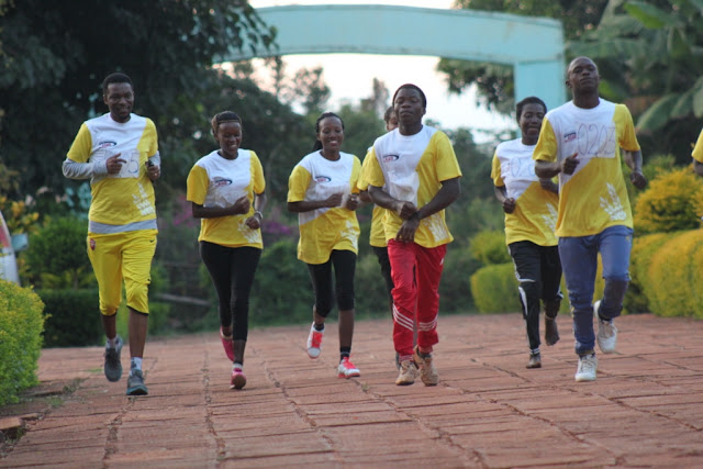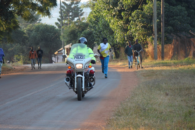 Washiriki wa mbio fupi za Km 5 wakichuana kuwania zawadi kwa washindi wa kwanza hadi watatu.