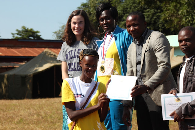 Mratibu wa tamasha, Reinafrida Rwezaura naye alishiriki mbio fupi Km 5 akipokea cheti kutoka kwa Diwani wa Kata ya Songea Mjini, Shaibu Kitete. Kushoto kwake ni Diwani wa Kata ya Matalawe, Judith Mbogoro na balozi wa tamasha kwa upande wa Marekani, Anna Schwartz.