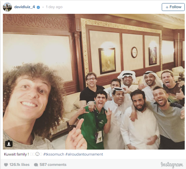 Akiwa katika mapumziko yake nchini Kuwait, Luiz alichukua muda wake kujumuika katika mchezo wa watu 5.