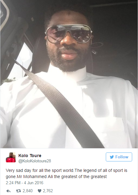 TWEET YA KOLO TOURE JUU YA KIFO CHA MUHAMMAD ALI YAWAACHA MIDOMO WAZI MASHABIKI