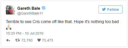 GARETH BALE JANA ALIKUWA MOJA YA WATU WA KWANZA KABISA KU-TWEET BAADA YA RONALDO KUUMIA
