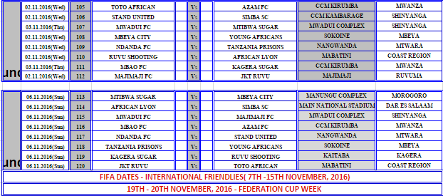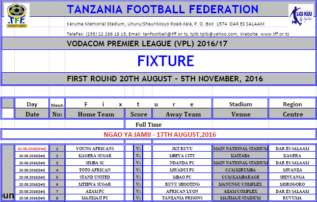 Ratiba rasmi ya Ligi Kuu ya Vodacom Tanzania Bara msimu wa 2016/2017, imetoka.