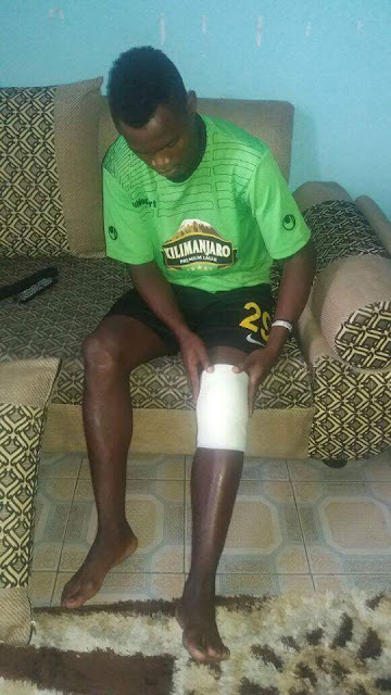 Kiungo mshambuliaji wa pembeni wa Yanga akionekana kufungwa bandeji kutokana na kuunguza maumivu ya goti yanayomkabili. Mwashiuya ataukosa mchezo wa marudiano na Medeama kule nchini Ghana.