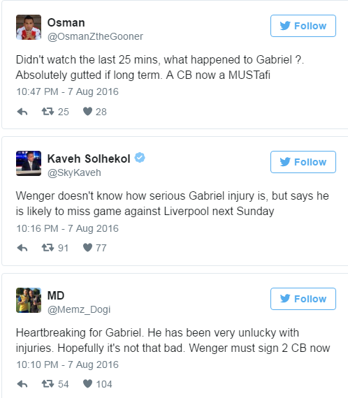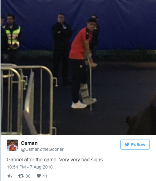 Hata hivyo bado haijathibitishwa, kwamba Gabriel ameumia kiasi gani na vilevile atakaa nje kwa muda gani.