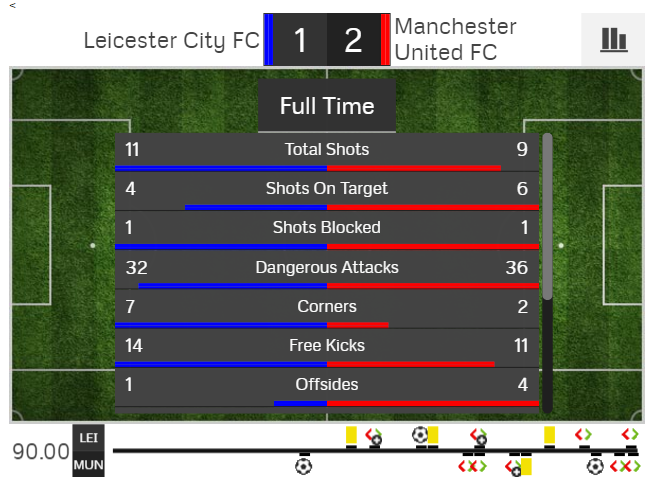 Manchester United chini ya kocha Jose Mourinho walianza kuandika bao la kuongoza dakika ya 32 kupitia kwa Jesse Lingard , lakini dakika ya 52 Jamie Vardy akafuta goli hilo.