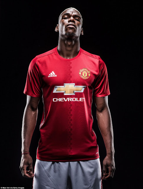 Paul Pogba akipozi akiwa na jezi ya Manchester United usiku wa kuamkia leo baada ya kukamilisha usajili wake |