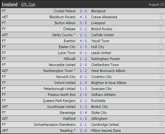 MATOKEO YOTE YA MECHI ZA EFL USIKU WA KUAMKIA LEO HAYA HAPA