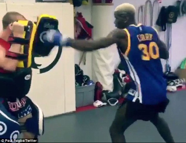 Pogba ame-post video kwenye akaunti yake ya Twita akimuonesha akipangua ngumi na kumpiga mateke mpinzani wake, huku akiwa amevaliwa vest ya nyota wa Golden State Warriors, Stephen Curry.