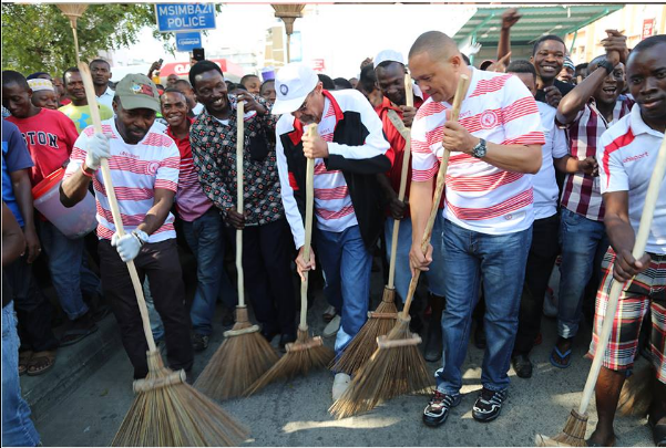 Mbunge wa Ilala Mussa Hassan 'Zungu' na Makamu Mwenyekiti wa Simba Geofrey Nyange 'Kaburu' wakijumuika kwenye usafi.