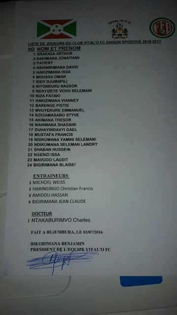 Jina la Mavugo ni miongoni mwa majina yaliyotumwa na Vital'O katika Shirikisho la Soka la Burundi (BF) ikiwa ni sehemu ya wachezaji itakaowatumia msimu ujao.