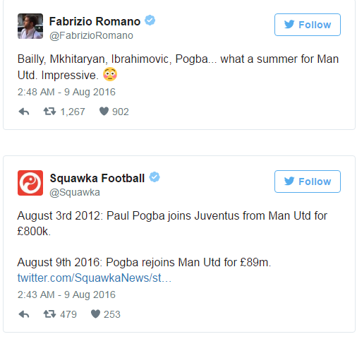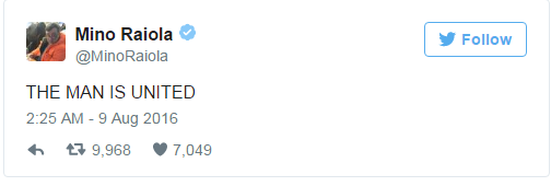 REACTIONS ZA TWITTER KUANZIA MINO RAIOLA NA WENGINE BAADA YA POGBA KUSAINI RASMI MAN UNITED Manchester United wamekamilisha usajili wa Paul Pogba kutoka Juventus. Watumiaji mbalimbali wa mtandao wa Twitter wamekuwa na mengi ya kusema; kuanzia wakala wa Pogba Mino Raiola mpaka Pogba mwenyewe.