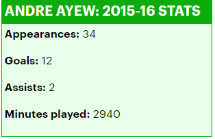 TAKWIMU ZA ANDRE AYEW MSIMU ULIOPITA