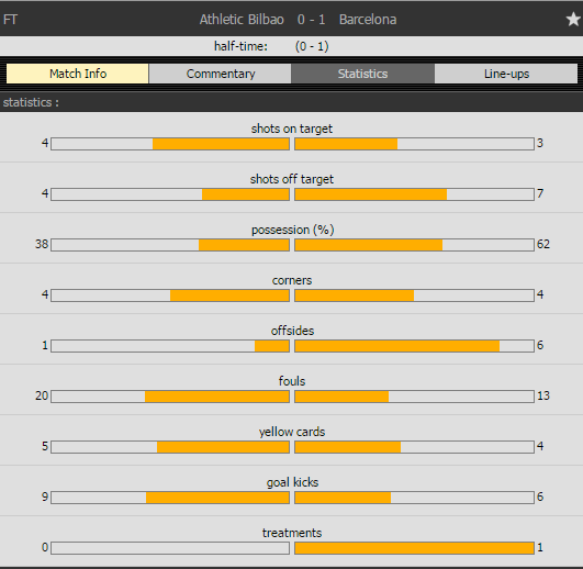 Takwimu za mchezo zilionesha kuwa Barcelona walikuwa bora zaidi ya wenyeji wao