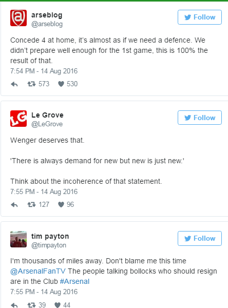 TWEETS- ARSENE WENGER ALIVYOKAANGWA BAADA YA KIPIGO CHA 4-3 KUTOKA KWA LIVERPOOL JANA
