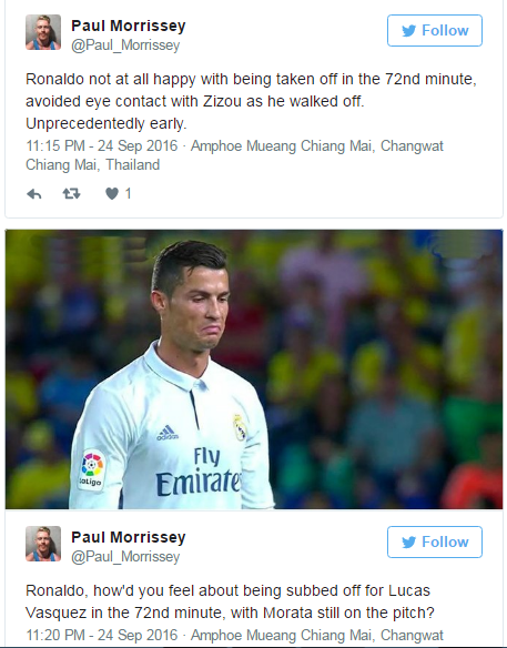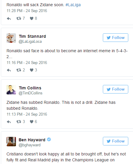» BAADA YA RONALDO KUONESHA VITENDO VISIVYO VYA KIMICHEZO BAADA YA KUFANYIWA SUB NA ZIDANE, HAYA NDIYO YALIYOJIRI KWENYE MITANDAO YA KIJAMII