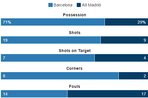 Baada ya kushindwa kupenya ngome ya Atletico kwa njia ya kupiga pasi nyingi, Barca waliamua kutumia mpira mirefu na ndipo walipofanikiwa kupata bao kupitia kwa Ivan Rakitic kufuatia krosi safi ya Andres Iniesta.