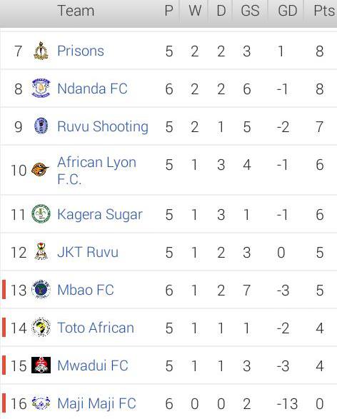 MSIMAMO WA VPL BAADA YA MICHEZO YA LEO