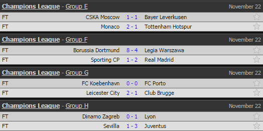 MATOKEO YOTE YA MECHI ZA UEFA CHAMPIONS LEAGUE JANA HAYA HAPA